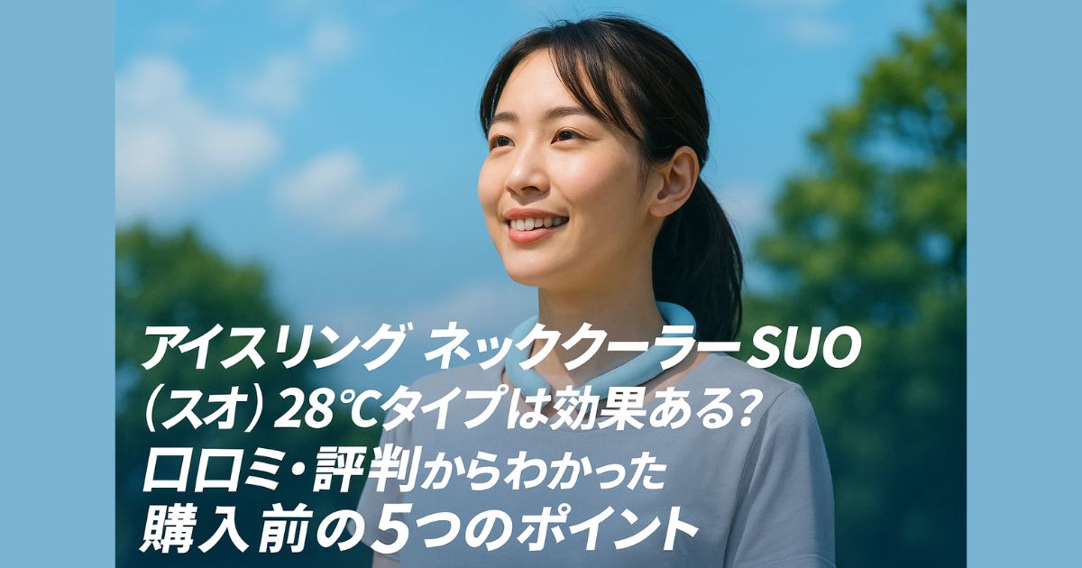 この記事では、アイスリング ネッククーラー SUO(スオ)28℃タイプの実際の効果や使用感について、口コミ・評判をもとに検証し、購入前に確認すべき5つのポイントをご紹介したいと思います。