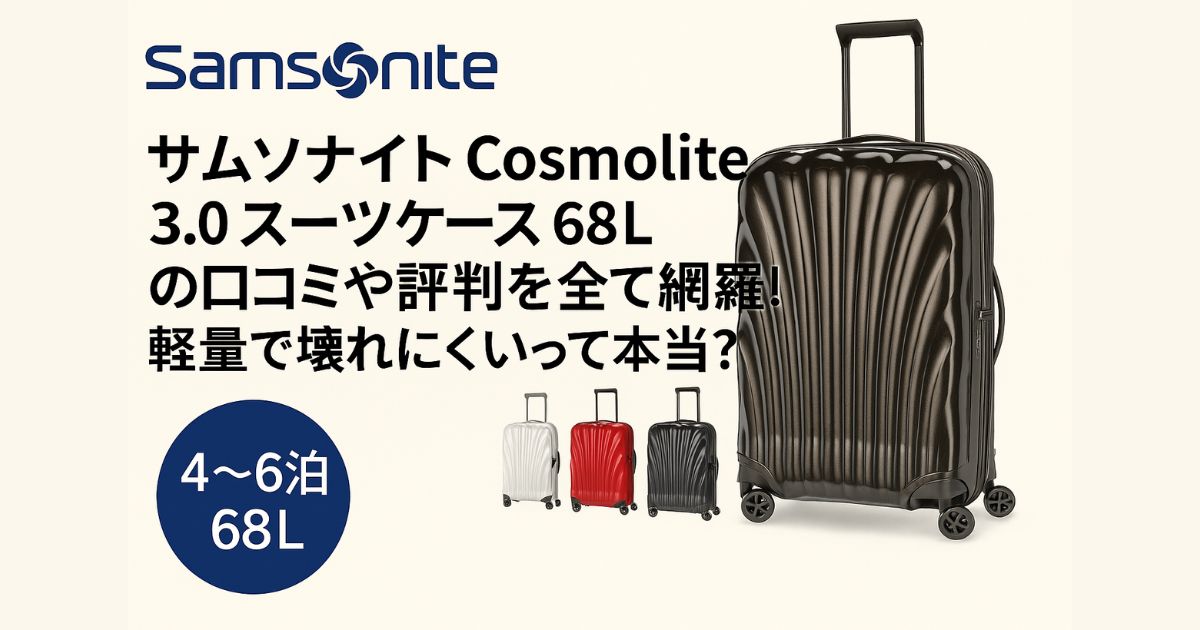 この記事では、サムソナイト Cosmolite 3.0 スーツケース 68Lの口コミや評判をもとに、実際の使用感やメリット・デメリット、購入前に知っておきたい注意点まで詳しく紹介したいと思います。