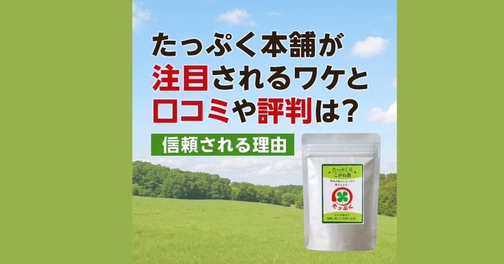 この記事では、たっぷく本舗が注目されるワケや、リアルな口コミ・評判、そして信頼される理由についてご紹介していきます。